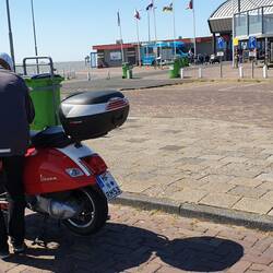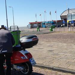 Nun hat Michael genug vom Schiffe gucken. Jetzt möchte er auch etwas unternehmen. Bei der Wahl des Transportmittels favorisiert er den Roller. Leeuwarden oder Fähranleger Holwerd? Da wir für Leeuwarden etwas mehr Zeit benötigen werden, als der fortgeschritten Nachmittag noch zu bieten hat, ist Holwerd das Ziel unserer Wahl.
