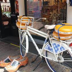 Der kleine Ort Westereen ist ca 2 km entfernt. Und dorthin mache ich mich am Nachmittag auf den Weg, um Brot zu besorgen. Leider ist es noch etwas bewölkt. Trotzdem bin ich von der sattgrünen Landschaft, den gelben Butterblumenwiesen mit den Schafen und kleinen Ponys darauf, begeistert. Sogar Alpakas mit ihrem Nachwuchs kann ich unterwegs bestaunen. Auch in Westeeren sind alle Läden geöffnet und ohne Mundschutz zu betreten, aber die Gastronomie dämmert noch bis zum 1. Juni im Coronaschlaf. Was mir sofort auffällt, als ich mein Rad geparkt habe und die Passanten an mir vorbei in den Supermarkt gehen sehe, sind die Holzschuhe. Vor allem die älteren Männer laufen noch in bemalten Holzschuhen herum. Sogar eine eigene Sprache hat man hier im Küstengebiet: Friesisch. Diese Sprache wird in verschiedenen Dialekten von Dänemark bis hin nach Westfriesland gesprochen. Und mit einem friesischen "A goeie - Hallo " werde ich unterwegs immer wieder freundlich gegrüßt.
