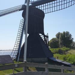 Eine ganz andere Geschichte bekommen wir an der Sägemühle de Rat in Ijlst erzählt. Der Radweg ist von dort ab nämlich gesperrt und wir müssen uns einen anderen Weg nach Sneek suchen Der nette Herr an der Mühle lädt uns ein, doch stattdessen die Mühle zu besichtigen. Ein anderes Mal vielleicht, denn auch die Mühle hat eine interessante und geschichtsträchtige Vergangenheit, aber leider keinen Kaffee und Kuchen, wegen denen wir unterwegs sind Die Mühle von 1711 arbeitet immer noch so wie bei ihrer Entstehung und wird von der Gemeinde und Freiwilligen Instand gehalten.