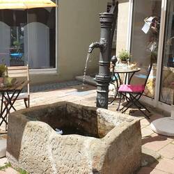 Die Temperaturen sind weiter gestiegen und ein wolkenloser Himmel empfängt uns am Morgen. Eine leichte Brise sorgt für Erfrischung. Nach dem Frühstück möchte ich gern in meinem eigenen Tempo einmal durch den Ort gehen, Fotos machen, den kleinen Läden einen Besuch abstatten und nebenbei Brot für den nächsten Tag besorgen. Beim Coop, wo ich auch das Riesenglas Erdnussmus, das sich Lena als Mitbringsel gewünscht hat, bekomme, stelle ich kurz vor der Kasse fest, dass ich mein Geld vergessen habe. Also Wagen zur Seite schieben, zurück zum Wohnmobil, Geld holen und den Kaufvorgang beenden. Zum Glück ist unser Stellplatz nur wenige Schritte vom Zentrum entfernt.