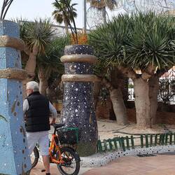 Für heute ist eine Radtour nach Benicassim angesagt. Benicassim ist eine Stadt an der Costa Azahar mit arabischer Vergangenheit. Die von den Arabern erbaute Burg von Montornès ist eine der spektakulärsten Sehenswürdigkeiten von Benicàssim, die nicht nur etwas von der Geschichte der Stadt, sondern auch einige schöne Ausblicke auf die Gegend bietet. Die Burg Montornés befindet sich auf dem Gipfel der Bergkette „Desierto de las Palmas“. Unser Ziel ist allerdings heute nicht die auf 500 m Höhe gelegene Burg, sondern der Wochenmarkt von Benicassím. Wir fahren von Oropesa auf dem Via Verde, einer ehemaligen Bahntrasse, die ohne nennenswerte Steigungen oberhalb der Küste durch die Natur unterhalb des Monte Bolvar mit seiner einheimischen Vegetation und den mediterranen Kiefern führt. Immer wieder können wir auf Buchten und Strände schauen. Der asphaltierte Weg führt auch durch ehemalige Eisenbahntunnel und zwängt sich durch Felsen hindurch, um erneut einen wundervollen Blick auf das Meer freizugeben. Während der Tour bieten Rastplätze mit Bänken und Fahrradabstellplätzen die Möglichkeit sich ausruhen. Wir stellen unsere Räder in der Nähe des Marktes von Benicassim ab. Dann bummeln wir über den Markt, und neben Oliven und Weintrauen finden noch andere Köstlichkeiten den Weg in den Einkaufsbeutel. Nach dem Marktbesuch werden noch ein paar Kleinigkeiten beim in der Nähe gelegenen Lidl erstanden. Dann machen wir Rast auf der Terrasse einer Bar am Radweg mit tollem Blick auf Benicassim und den Strand. Da dürfen Sangria und Oliven natürlich nicht fehlen. Beschwingt geht es wenig später zurück zum Wohnmobil und in die nachmittägliche Sonne.