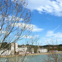 Es regnet weiter ununterbrochen. Am Nachmittag lasse ich Regen-Regen sein, verpacke ich mich wasserfest und gehe auf Entdeckungstour. Mit wenigen Schritten bin ich an einem kleinen Hafen. Im Wasser liegen die Schiffe noch im Winterschlaf und träumen vom Frühling. Ein Fußweg führt zur Zitadelle. Das Wasser steht hoch auf dem Weg und in kürzester Zeit habe ich nasse Füße und Schlamm verschmierte Schuhe. Durch einen Tunnel gelange ich in die Altstadt. Schmale, enge Straßen und alte Häuser trotzen dem Regen. Aus defekten Regenrinnen fällt das Wasser auf die Straße und trifft vorbei eilende Passanten mit einem Schwall. Ich gelange ins Zentrum . Viele kleine Läden, Bars und Cafe laden mich ins Trockene ein. Aber ich laufe zur Mosel. Eine Doppel-Schleuse ist in Betrieb. Schöne Spazier- und Radwege führen entlang der Mosel. Heute liegen sie verwaist im Regen.