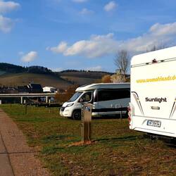 Es ist 9.15 Uhr als wir den Platz in Mendig verlassen. Die Sonne zeigt sich als zaghafter gelber Streifen am Horizont, die aber gegen die fast geschlossene Wolkendecke keine Chance hat. Wir haben sehr gut geschlafen, und es war ausgesprochen ruhig. Am Abend waren es fünf Mobile, die hier genächtigt haben.