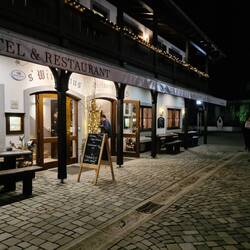 Gegend Abend laufen alle noch einmal die knapp 2 km in den Ort zum gemeinsamen Essen im "Wirtshaus".