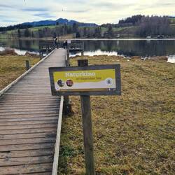 Am Morgen, noch bevor es richtig hell ist, fährt das Jungvolk (Jan- Michel, Lena-Line und Tristan) auf die Piste bei Garmisch zum Skilaufen. Wir bekommen heute das Babyphone und holen Paul, als er wach ist, aus seinem Bettchen. Nach einem gemeinsamen Frühstück mit ihm wollen wir den herrlichen Sonnenschein nutzen. Wie verabredet fahren wir mit Carsten und Delia nach Bad Bayersoier an den gleichnamigen See. Hier gibt es einen schönen Rundwanderweg. Wenn Schnee liegt, ist dieser Weg gespurt und die Loipe lockt die Ski Langläufer. Doch am Langlauf ist bei dem fast frühlingshaften Wetter nicht zu denken.