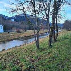 Während dieser Zeit unternehmen Delia und Carsten eine Wanderung entlang der Laine und auch ich nutze die herrliche Mittagssonne um an der Ammer zu walken und einen Blick auf das Skigebiets am Kolbensattel zu werfen.