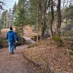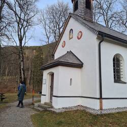 Es ist herrliches Sonnenwetter, allerdings pfeift der Wind ganz eisig. Da ich gestern in der Schleifmühlenklamm ordentlich ins Schwitzen gekommen bin, habe ich auf Mütze, Handschuh und dicken Pullover verzichtet und nun ist es mir etwas kalt. Wie man es macht, macht man es verkehrt.