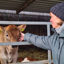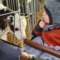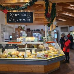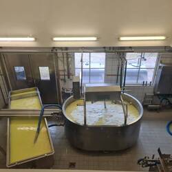 Von der Basilika aus, geht es vorbei am Brauhaus und der Destillerie, bevor wir zur Schaukäserei kommen. Die hier gehaltenen Kälbchen finden nicht nur bei Paul reges Interesse. In der Schaukäserei schauen wir uns durch großeFenster an, wie Käse hergestellt wird.