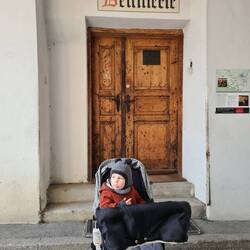 Am Nachmittag ist eine Wanderung zur Romanshöhe angesetzt, auf dem *Altherrenweg. " Tristan und Lena, die vom Skifahren zurück sind, wollen auch noch mit, sind aber mit Paul ein bißchen zu langsam. So trennen wir uns und treffen auf dem Rückweg wieder auf einander. Ein toller Weg, der oberhalb am Berg entlang führt und viele schöne Ausblicke ins Tal bietet. Ganz bis zur Romanshöhe, wo es wohl den besten Kaiserschmarrn geben soll, schaffen wir es dann doch nicht. Es fängt an, dunkel zu werden. So drehen wir um und treffen, wie geplant, beim Rückweg auf die Drei. Paul fühlt sich im Trageruckssck auf Tristan Rücken ganz wohl. Es ist wirklich dunkel, als wir zurück kommen. Alle sind erst einmal geschafft. Jan-Michel, an dessen Fuß ein schmerzhaftes Hämatom festgestellt wurde, bedingt durch die zu engen Skischuhe, wollte eigentlich auch mit. Wir haben aber vergessen, ihm Bescheid zu sagen. So hat er auf einem eigenen, kleinen Spaziergang die "Funktionsfähigkeit" seines Fußes getestet. Jetzt heißt es nur noch Duschen, Abendessen und dann vielleicht noch ein Stündchen zusammen sitzen und den nächsten Tag besprechen..... so der Plan, der auch eingehalten wird.Read more