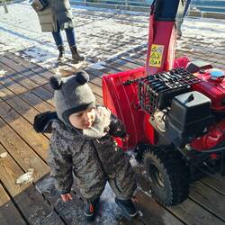 Schloss Linderhof entstand aus einem ehemaligen Försterhäuschen. 1869 ließ Ludwig II. das Försterhäuschen für seine Zwecke als "Königshäuschen" umbauen. Das 1878 fertiggestellte Schloss Linderhof ist das kleinste der drei Schlösser Ludwigs II. und gilt als das Lieblingsschloss des „Märchenkönigs“. Im Park findet man viele Zierbauten verschiedener Stile, wie das Marokkanische Haus, die Klause des Gurnemanz oder die Venusgrotte, die aber wegen Renovierungsarbeiten geschlossen ist. Trotz des schönen Wetters macht das "vorsichtige Herumgetapse" im Park nicht viel Spass. So fahren wir zurück in die Ferienwohnung und gehen von da aus zur Talstation der Laber Bahn. Mit Paul im Wanderrucksack geht es mit der Gondel hoch zur Bergstation. War ich vor zwei Tagen total allein hier oben, sonnen sich heute unzählige Menschen auf den Bänken und Liegestühlen und genießen Kaiserschmarrn, Sonne und die Wahnsinnsaussicht. Paul interessiert sich allerdings mehr für die rote Schneefräse auf der Terrasse, als für den Schnee, der hier oben liegt. Als wir wieder zu Tal fahren ist seine Mittagsschlafzeit schon lange überschritten und dem entsprechen müde und quengelig ist er.