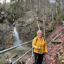 Eine Klammwanderung ist ein wirklich spektakuläres Naturerlebnis, stelle ich fest. Und komme beim Klettern über die Stege, Stufen und Steine ganz schön ins Schwitzen. Wir sind so ziemlich allein in der Klamm. Nur hin und wieder kommen uns Wanderer entgegen. Im Sommer muss das hier super sein. Dann kann man sich bestimmt, in den kleinen Gumpen etwas abkühlen. Oben angekommen haben wir die Wahl, den gleichen Weg wieder zurück zu gehen, oder über eine Forststraße zurück zum Ausgangspunkt zu laufen. Wie entscheiden uns für letzteres. Weil wir relativ schnell wieder unten sind, laufen wir noch eine Runde zum Wassertretbecken, das durch einen Bach gespeist wird, jetzt aber leer auf andere Zeiten wartet. Es ist herrlich in der Sonne zu laufen und die Landschaft zu betrachten. Am Schluss schauen wir noch dem Treiben auf der Unterammergauer Skipiste zu, wo sich die ganz Kleinen im Ski fahren üben, bevor es zurück zur Ferienwohnung geht.