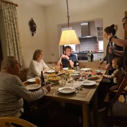 Mit Karsten und Delia, Pauls andere Großeltern und Jan und Nadine, Freunden von Lena und Tristan, ist die Runde am Abend komplett. Karsten und Delia werden auch in Oberammergau dabei sein.