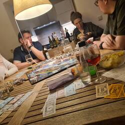 Wir vertreiben uns die Zeit bis Mitternacht mit einer Partie Monopoly der Bad Oeynhauser Edition.