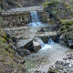 In der Klamm kann man auch die Reste von stillgelegten Schleifmühlen sehen, jene Mühlen der Wetzsteinmacher, die dem Ort viel Reichtum gebracht haben.