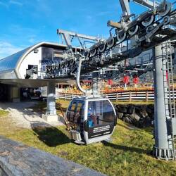 wollen mit der Seilbahn hinauf auf die Piste fahren.