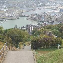 Von der Promenade aus können wir rechts und links oben auf den Klippen die Touristen sehen. Es gibt jeweils einen Wanderweg entlang der Falaises (Klippen). „Welche Seite nehmen wir?“ frage ich Michael. Der sieht mich zunächst etwas ungläubig an. „Du willst doch nicht da hoch?“ bekomme ich als Antwort. Doch dann überlegt er es sich noch einmal und wir klettern die ersten Stufen der Treppe zur Aussichtsplattform an der kleinen Kapelle hinauf. Starker Wind, der mit zunehmender Höhe immer stärker wird, schiebt uns voran. Immer wieder halten wir an, um nach unten zu blicken. Oben angekommen, stellt Michael fest, dass man auch mit dem Auto herauffahren kann.Read more