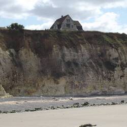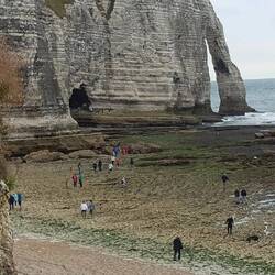 Wir erfahren, dass zweimal am Tag frischer Fisch, Muscheln und Schalentiere in den Fischbuden an der Promenade verkauft werden. Hier im Ort wird noch Küstenfischerei betrieben und das Anlanden der Fischerboote, die mit Traktoren auf das Kiesufer gezogen werden, ist die tägliche Attraktion des Ortes. Unser Abendessen scheint gesichert. Allerdings haben wir weder Ahnung davon, um welche Fische es sich handelt, noch wie man sie zubereitet. Das Fischessen verschieben wir lieber auf den nächsten Tag und bedienen uns heute aus unserem noch reichlich gefüllten Gefrierschrank. Schade, dass mir vor Austern graut. Hier kann man überall frische Austern, Muscheln, Krebse und Seeschnecken kaufen. Nicht unbedingt mein Speiseplan. Einzig so ein Hummer, der würde mich schon interessieren. Aber keine Ahnung, wie man den isst. Sicherlich gibt es auf YouTube eine Anleitung dazu. Am Nachmittag ist Ebbe, und wir können an der Steilküste entlanggehen.Read more