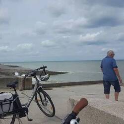 Was sind denn das für komische Pfähle im Wasser? Beim Näherkommen sehen wir, dass sie voller Miesmuscheln sind. Das ist also eine Muschelplantage. Hier werden die Muscheln gezüchtet und gepflückt, die in den Restaurants überall zum Essen angeboten werden. Eine neoprenbekleidete Gruppe Frauen durchkämmt das Meerwasser mit Rechen und selbstgebauten Schaufeln. Aus dem so herausgeholten Algen suchen sie kleine, durchsichtige Tiere heraus. Für was auch immer. Wir laufen an der Wasserlinie bis zum Cap Grise-Nez. Cap Grise-Nez. Das geht nur bei Ebbe. Bei Flut muss man den Weg durch die Dünen nehmen, der aber viel länger und weitaus anstrengender ist. Wir können den Weg am Strand auch wieder zurückgehen, bevor das Wasser kommt. Mit dem Rad geht’s dann wieder zurück. Eine schöne Tour, die wir am Ende mit 18 km Rad fahren und 6 km Sparziergang verbuchen können. Am Nachmittag geht’s noch einmal mit den Stöcken an den Strand und in den Ort. Da suche ich mir die kleinen, ruhigen Nebenstraßen heraus, die nicht mit den Geräuschen der Urlaubern angefüllt sind. Ich liebe diese Walkingtouren, bei denen ich aufmerksam die Gegend wahrnehmen kann und sich das eine oder andere Motiv dem Auge oder dem Fotoapparat zeigt. Die monotone Bewegung hat etwas meditatives und ermutigt Gedanken, hervorzukommen und Ideen, sich zu entwickeln. Entspannt und gut gelaunt komme ich zurück zum Campingplatz. Beim Spülen, das auf dem Campingplatz immer eine Gelegenheit zur Kommunikation bietet, erfahre ich, dass das hier noch nicht einmal die Picardie sondern die Pays de Nord ist. Morgen geht es weiter entlang des Ärmelkanals , der irgendwann zum Atlantik wird und vielleicht sind wir dann in der Picardie oder vielleicht auch schon in der Normandie.Read more