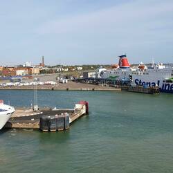 Den haben wir trotzdem, als wir natürlich viel zu früh am Fähranleger sind. Es gehen noch zwei Fähren vor unserer hier ab. Wir finden zunächst weder einen vernünftigen Parkplatz, die vorhandenen sind alle durch Barrieren unterteilt, noch den Schalter der TT-Line. Die Dame von der Reederei DFDS serviert uns auf unsere Frage hin recht hochnäsig ab: "Its an other company in an other building!" Und sie ist auch nicht bereit, uns zu verraten in welches der hier vorhandenen Gebäude wir gehen müssen. Wir fragen uns weiter durch und finden den Schalter, der aber natürlich noch geschlossen ist und erst um 21.00 Uhr öffnet. Es ist mal gerade 17.00 Uhr. Erst beim Einchecken bekommen wir die Wartespur und das Gate genannt.