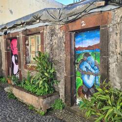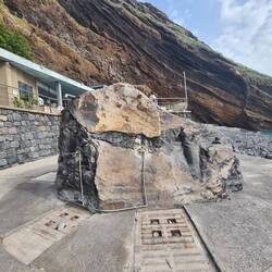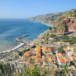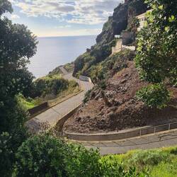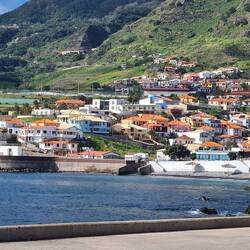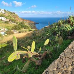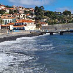Auch das Stück zwischen Ponta do Sol und Madalena do Mar, das wir eigentlich fahren wollten, ist leider gesperrt und wir müssen für dieses Stück auf die höher gelegene V1 ausweichen, treffen aber kurz vor Madalena do Mar wieder auf die ER 101. Wir fahren in einen verschlafenen Ort am Meer, dessen weiße Häuser sich von dem Blau des Atlantiks abheben.