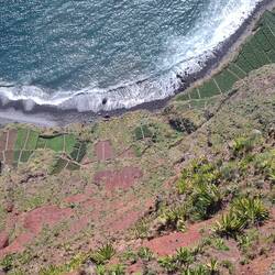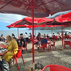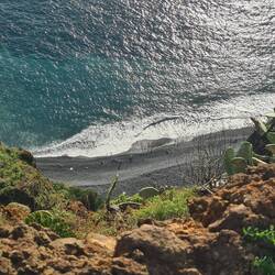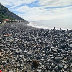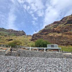Wir genehmigen uns eine kleine Pause in einer Bar direkt am Strand und schauen den Paragleitern zu, die oben von der Klippe gleiten und direkt in unserer Nähe am Strand landen. Ich möchte unbedingt noch mit den Füßen ins Wasser, doch der grob steinige Strand ist kaum zu begehen, und so lasse ich von dem Vorhaben ab. Madeira ist nicht unbedingt eine Insel für sonnenhungrige Strandgänger, das merken wir immer wieder. Es ist eine Insel, auf der man aktiv sein muss und die erobert werden will.