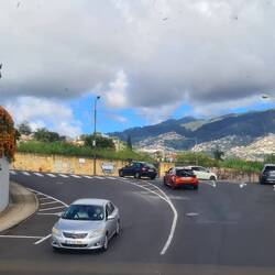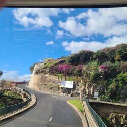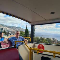 Mein Kopf ist voller Bilder, Eindrücke und Informationen vom heutigen Tag, die ich erst einmal etwas sortieren muss. Aber von Anfang an: Auch heute fahren wir wieder mit dem Linienbus nach Funchal. Die einfache Fahrt kostet 2,20 € und ist ihr Geld wert. Es gibt aber auch Gruppenkarten für 3, 5, oder 7 Tage und Zehnerkarten. Die sogenannten Mobikarten. Bezahlt wird beim Busfahrer. Die Busfahrer sind die echt Helden auf diesen engen und steilen Straßen. Wir haben heute die Auswahl zwischen drei Abfahrtzeiten zwischen 10.00 Uhr und 11.00 Uhr für denselben Bus: die an der Haltestelle angezeigte, die auf dem Infozettel des Hotels und die vom Google Maps. Dieses Mal gewinnt Maps. Obwohl der öffentliche Verkehr wirklich gut ausgebaut ist, ist das mit den Zeiten oft eine Glückssache. Die Talfahrt nach Funchal ist fast noch etwas spektakulärer als gestern die Fahrt hoch nach Caniçio. An der Endhaltestelle an der Seilbahn angekommen, wird der Plan, zum "Monte" hochzufahren, verworfen. Diese Tour in der gläsernen Kabine ist nichts für Menschen mit Höhenangst. Die Fahrt mache ich morgen allein und heute erkunden wir gemeinsam Funchal und die Umgebung mit einem Hopp-on-hopp-off-Bus, der auch an der Seilbahn seine Haltestelle hat. Wir müssen nicht lange warten, da kommt er auch schon und wir finden einen super Platz oben auf dem Dach. Die Fahrt kostet 20 Euro und erlaubt eine unbegrenzte Anzahl von Aus- und Zustiegen. Das, was wir zu sehen bekommen und wohin der Bus uns fährt, ist sein Geld wert. Zunächst geht es durch die Innenstadt und die Zone Vela, dann führt die Route aus der Innenstadt hinaus in die Randgebiete, wie zum Katharinenpark, zum Station "Cristiano Ronaldo", dem Fußballhelden der Insel, der sogar schon ein eigenes Museum hat und zum futuristisch gestalteten Casino.
