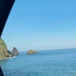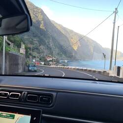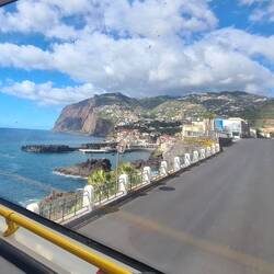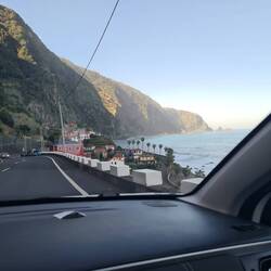 Der Fahrer nimmt außer uns noch 3 weitere Personen mit und da er aus einem Hotel in Caniço unten am Meer noch weitere Personen abholen muss, bekommen wir zum Abschied noch einmal eine Fahrt entlang des Atlantiks.