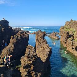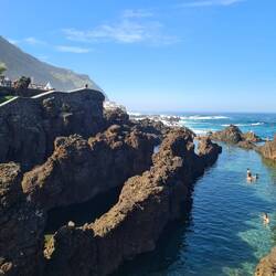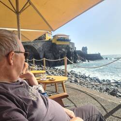 Endlich kann ich mal mit den Füßen hinein in das erstaunlich warme Wasser. In der Stadt dominieren die Gebäude der Brennerei, Engenhos da Calheta. In der Zuckerrohrfabrik wird noch heute traditionell gearbeitet. Für uns geht es weiter bis an die westliche Spitze zum Miradouro do Farol da Ponta do Pargo, dem Leuchtturm. Hier haben wir noch einmal einen tollen Blick auf die Weite des Atlantiks und die Klippen. Dann geht es zurück zum Hotel, um noch ein, zwei Stunden in der Sonne zu liegen, die wir ab Donnerstag wohl sehr vermissen werden. Aber zunächst schreckt uns die Mitteilung auf, dass am Donnerstag alle deutschen Flughäfen bestreikt werden. Kommen wir dann überhaupt von der Insel herunter? Morgen werden wir mehr wissen.Read more