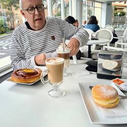 Da die Sonne sich rar macht, wird es irgendwann zu frisch am Pool, Zeit für einen Cappuccino gegenüber beim Bäcker.