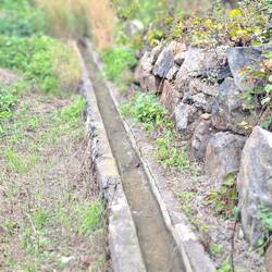 Ein kleiner Bummel durch den Ort schließt sich der Wanderung an. Hier sehen wir auch, wo das Wasser für die Pflanzen herkommt. In einem großen steinernen Bachbett stürzt ein Bach zu Tal.