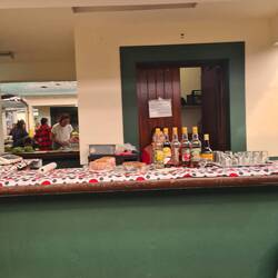 Auch das Abendessen war reichlich, mit Suppe, Salatbuffet, Fisch, Fleisch, Gemüse und Beilagen. Das Essen in den Warmhaltebehältern war leider meist nur lauwarm, das war schade. Wahrscheinlich wurde es von einer Großküche oder Cateringservice geliefert. Irgendwie wurden wir keine Freunde.