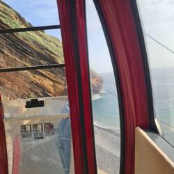 Ein kleines Highlight habe ich mir extra für den letzten Tag gelassen. Ich laufe hinunter zur Jesusstatue und benutze die Seilbahn hinunter an den Strand. Einfach toll, wie die Gondel an den Felsen entlang hinunter zum Strand schwebt. 4 Euro kosten Hin- und Rückfahrt.
