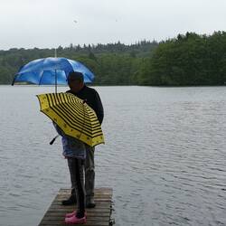 Dann wird erst einmal ordentlich Nach- Gefrühstückt. Clara vermisst den Lachs. Aber den gibt es erst morgen. In einer Regenpause besichtigte ich mit Clara den Campingplatz. Wie schon erwähnt sind von den 100 Plätzen ca. 60 an Dauercamper verpachtet. Dann gibt es noch Mietwohnwagen, für die Menschen, die gern Campen möchten, aber kein Equipment haben. Gut 25 - 30 Plätze sind Touristenplätze, die alle sehr großzügig sind. Es gibt zwei kleine Badestellen auf dem Platz, die sogar einen abgesperrten Nichtschwimmerbereich haben. Die Sanitäreinrichtungen sind einfach, aber sauber. Am meisten ist Clara von dem großen Zirkuszelt fasziniert, in dem Veranstaltungen stattfinden können. Der Erkundungsgang wird durch wieder einsetzenden Regen unterbrochen, der uns schnell ins Wohnmobil treibt. Für solche Regenmomente gibt es Beschäftigungsmaterial. Ich habe weiße T-Shirts und Textilmalstifte eingepackt und Clara ist die nächsten 2 Stunden mit der Gestaltung eines eigenen Pokemon T- Shirts beschäftigt. Nach dem Kaffee trinken mit frischen Erdbeeren und Waffeln hat der Regen wieder aufgehört. Auch Michael ist jetzt bereit einen Spaziergang zu machen. So geht es noch einmal über den Platz und entlang des Sees. Im Ufergras entdecken wir eine große Schnecke. Nur mir Mühe kann ich Clara davon abhalten, das Tierchen mit ins Wohnmobil zu nehmen. An der Badestelle muss Clara dann mit den Füßen ins Wasser und ist so schnell nicht herauszubekommen. Wenig später bekommen wir zwei Plätze weiter neue Nachbarn mit Wohnmobil und mit drei Kindern. Von diesem Zeitpunkt an ward Clara nicht mehr gesehen. Sie spielt mit den neuen Freunden am See, bepackt mit Käscher, Angeln und Eimern. Als wir sie zum Abendessen rufen, muss sie sich komplett umziehen. Nein, gebadet hat sie nicht in den Sachen. Aber irgendwie muss das Wasser bis ganz nach oben, bis zum Hals gelangt sein. Keine Ahnung wie. Nach dem Abendessen, oh Wunder, sagt Clara von sich aus, dass sie ins Bett möchte und ist wirklich keine zehn Minuten später eingeschlafen.Read more