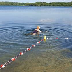 Am Nachmittag wollen wir mit den Rädern die nähere Umgebung erkunden. Clara hat seit kurzem ein neues, größeres Rad. Aber bereits auf dem Zufahrtsweg zum Campingplatz stellen wir fest, das die beiden noch nicht ganz kompatibel sind, Clara und das Rad. Auf der, wenn auch nur wenig befahrenen Dorfstraße springt sie jedes Mal vom Rad, wenn sich ein Auto nähert. Nein, das ist uns so zu gefährlich. Das müssen wir wohl noch mit ihr üben. Wir biegen in eine kleine Seitenstraße ein und gelangen nach ein paar Metern an eine öffentliche Badestelle. Hier stellen wir die Räder ab und setzen uns auf eine Bank und sehen Clara zu, wie sie im seichten Wasser des Ufers auf Entdeckungsreise geht, sich vorher aber der Hose und der Socken auf ausdrücklichen Wunsch einer älteren Dame entledigen muss. Nein, die Fundstücke, wie einen toten Fisch und diverse andere im Wasser gefundenen Dinge wollen wir nicht mitnehmen. Clara ist glücklich und die geplante Radtour ist sozusagen ins Wasser gefallen. Als wir nach einer guten Stunde zum Campingplatz zurück kommen, die Zeit unserer Abwesenheit wird unserem dauercampenden Nachbarn wohl gereicht haben, sein Grundstück zu mähen. Er wollte uns nicht stören, was eigentlich sehr nett und fürsorglich von ihm ist, zumal er unseren Platz gleich mitgemäht hat. Also, als wir zurückkommen, verabschiede ich mich dann noch für ein Stündchen und fahre einmal um den See mit dem Rad. Schließlich muss man ja wissen wo man ist. Diese Strecke durch Wald und Wiesen wäre für Clara viel besser zum Radfahren gewesen, denn hier begegnen mir außer ein paar Spaziergängern kaum jemand. Man kann halt nicht alles wissen.