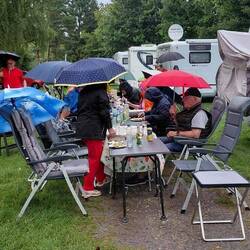 Michael tendiert zum Nachhausefahren – bei Regen kann er sowieso nur im Wohnmobil sitzen. 😕 Ich überrede ihn sanft, und so verabschieden wir uns bereits vor 10 Uhr von der Gruppe. 🖐️