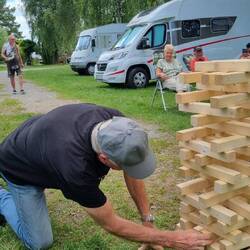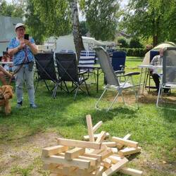 Danach: Kaffeeklatsch im Schatten der Birken mit Kuchenresten vom Vortag, kleinen Holzspielchen und viel Wohnmobil-Geplauder. ☕🍰🚐