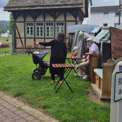 Nach und nach erwacht das Campingleben. Ein fröhliches „Guten Morgen“ hier, ein Schwätzchen da. Um 11:30 Uhr starten wir zur geführten Radtour mit Harald und Kirsten – durch das wunderschöne Weserbergland, mit Hügeln, Wäldern, kleinen Ortschaften wie Wallensen und Ockensen, wo die Zeit stillzustehen scheint. 🏞️🚴♂️🌳