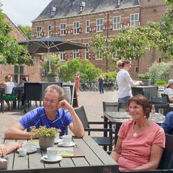 Das Wetter wird immer besser und wir können mit Blick auf den See frühstücken. Danach ist eine Radtour nach Zeedam angesagt. Da Ingrid Probleme mit der Schulter hat, können wir nur kurze Touren machen. Der kleine Ort Zeedam liegt etwa 5 km entfernt und man erreicht ihn über wenig befahrene Straßen, wenn man dem Radknotensystem der Niederlande folgt.