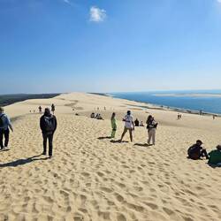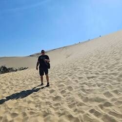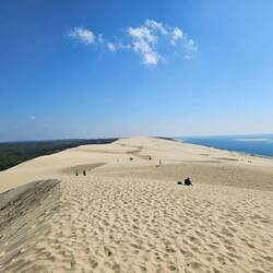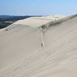 Heute haben wir viel Sand gesehen, geschätzt etwa 60 Millionen Kubikmeter. Wir waren auf der höchste Wanderdüne Europas. Sie ist 110 Meter hoch, 500 Meter breit und etwa 2,7 Kilometer lang.Read more