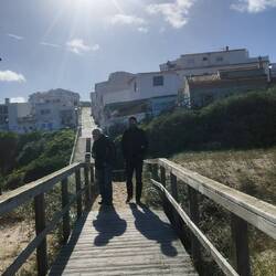 Wir haben also gewartet und gegen Mittag dann noch schnell sein Häuschen ausgecheckt. Dann fuhren wir nach Odeceixe und durch enge Gassen hoch zur Windmühle, die eigentlich noch in Betrieb ist und auch besichtigt werden kann, aber ein Zettel mit "closed" hing an der Tür 🤷🏼