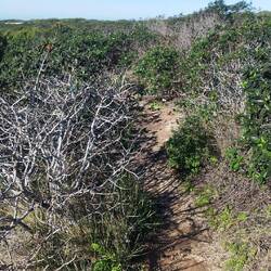 Die Küste ist hier nicht mehr felsig, sondern mit breiten Dünenstreifen und endlosen Sandstränden ausgestattet. So ein bisschen Ostsee-Feeling kommt hier auf.