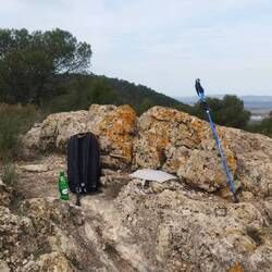 Nach einem gemütlichen Frühstück starte ich heute besser ausgerüstet als gestern und werde auch glatt belohnt, denn anscheinend habe ich bei meiner Zufallsplanung per Komoot einen Treffer gelandet, denn nach einem km ging es in die Wildnis auf einen kleinen schmalen Wanderweg, der zwar keine Beschriftung o.ä.hatte, aber immer wenn es bissel schwierig wurde, mit Steinen markiert war. Nach ca. 5 km musste ich ein bisschen Straße und zwei Kreisverkehre überwinden, aber wenn kein Auto kommt, ist das kein Problem😉