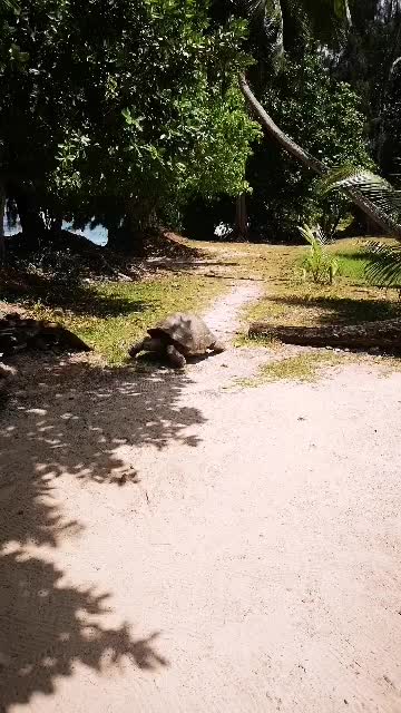 Am Anse Severe leben zwei süße Landschildkröten, die sich immer über Obst freuen. Ganz schön schnell die Süße. 😄