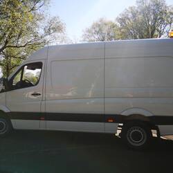 Einige Dinge gefielen uns bei unserem Sprinter auf Anhieb. Der Wagen hat eine Klimaanlage, Standheizung, einen drehbaren Beifahrersitz (den Fahrersitz brauchten wir nicht drehbar so wie wir umbauen wollten), wenig gefahrene Kilometer, scheckheftgepflegt, kaum Rost von außen, nicht überall Fenster (für Sachen innen zum aufhängen und auch wegen der Isolierung top), einen Tritt hinten und die Farbe weiß fanden wir auch ganz nice. So kann man später wenn man möchte immer mal mit Tattoos oder Farbe spielen. Der Motor sah aus wie neu und der Sprinter hatte sogar schon eine Außenstromsteckdose, die wir somit nicht mehr bauen mussten. 😊