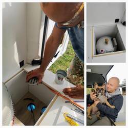 Also ausmessen, im Internet suchen, bestellen und ausprobieren. Als die Fenster und Dachhauben nach und nach eintrudeln, konnten wir loslegen. Beim Einbau der Fenster muss immer darauf geachtet werden, das eine Holzunterkonstruktion in der richtigen Stärke der Wand gebaut wird. Da der Sprinter keine geraden Wände hat, war die Unterkonstruktion teilweise eine sehr knifflige Sache, was Sven aber super hinbekommen hat. Der Sprinter ist ja sehr rund. Daher gibt es fast nichts passendes. Der Kreativität ist somit keine Grenzen gesetzt. 😄😄😄