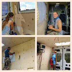 Das ist genau Svens Spezialgebiet. Sage und schreibe um die 300 Meter Kabel werden in die Wände und in den Boden gezogen. Um diverse Geräte wie Wechselrichter, 1000W Ladebooster, Gaswächter, Batteriewächter, Pumpen, Ventilatoren, Außenlichter, Antennen, Lampen, Kühlschrank, Boiler, Router usw. zu verbinden. 🥴