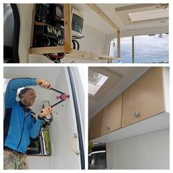 Sven, Gaby und ich haben jeden Tag fleißig geschraubt, geschliffen und lackiert. Am nächsten Tag war alles durchgetrocknet und dann wieder das Gleiche. 😄 Der Lack muss ja zwischendurch immernoch trocknen. ☺️ Die Verkleidung für die Türen sind natürlich wie so vieles bei Sprinti alle abgerundet gewesen, sodass das sägen und schleifen einige Zeit in Anspruch genommen hat.