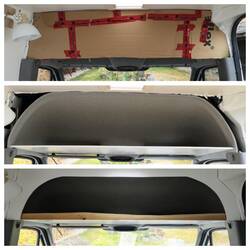 Den Platz über der Fahrerkabine kann man ideal als Schrank nutzen. Mit Kartons bauen wir alles vor und zum befestigen können wir die Löcher nutzen die eh schon in Sprinti vorhanden sind. Hier ist Power gefragt um die Schrauben festzuziehen, damit auch die Sonnenblenden wieder ranpassen. 💪😄 So haben wir einen perfekten Kleiderschrank und es ist immer noch reichlich Platz zum sitzen. 😊