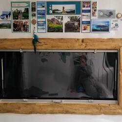Für das Bad wollten wir statt Kabine im Wagen, wie wir es in Australien hatten, eine warme Außendusche. Allerdings mit Duschvorhang falls man mal nicht alleine steht. Als in Neuseeland ein Auto mit zwei Typen eine Vollbremsung gemacht und zurück gesetzt haben als ich geduscht habe, hab ich mir überlegt ist vielleicht ein Vorhang ganz nice. 😂