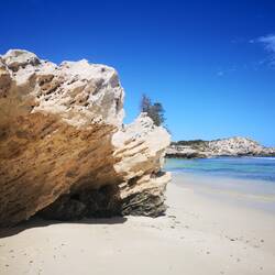 Nicht weit entfernt liegt der Yanchep Nationalpark. Als wir diesen erkunden raschelt es auf einmal im Gebüsch. Dann sehen wir sie: eine Kängurumutti mit ihrem Baby. 🦘❤️ Das Kleine versucht in ihre Tasche zu klettern, aber dafür ist es schon viel zu groß. Nur noch das Köpfchen passt rein. 😄😍 Also hoppeln sie irgendwann ganz in Ruhe weg. Die Koalas entspannen sich derzeit im Schatten der Eukalyptusbäume. 🌳 Bunte Kakadus fliegen umher.